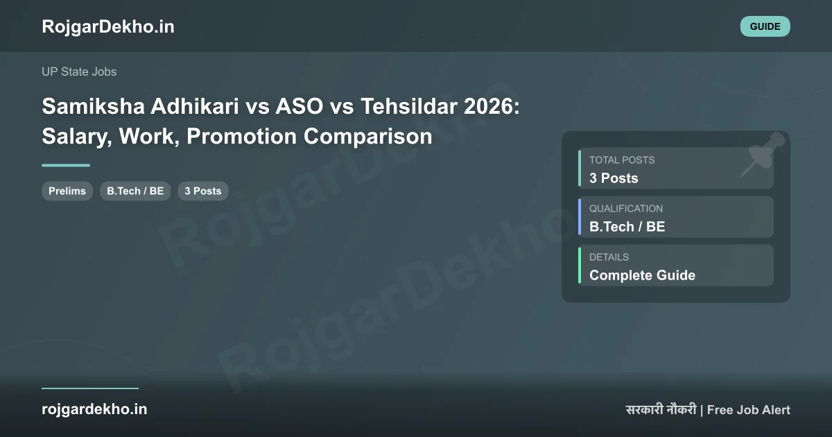 If you are a UP aspirant trying to decide between three of the most popular state government posts — Samiksha Adhikari (UPPSC RO/ARO), Assistant Section Officer (SSC ASO in CSS), and Tehsildar / Naib Tehsildar (UP PCS) — this is the comparison you have probably been searching for. The popular advice is "Samiksha Adhikari for office work, Tehsildar for power, ASO for Delhi posting" — but the actual numbers, work environments, and career trajectories tell a much more nuanced story than that one-line summary. Most aspirants pick the wrong job for their goals because no one has put a clean side-by-side comparison of all three on the internet.
